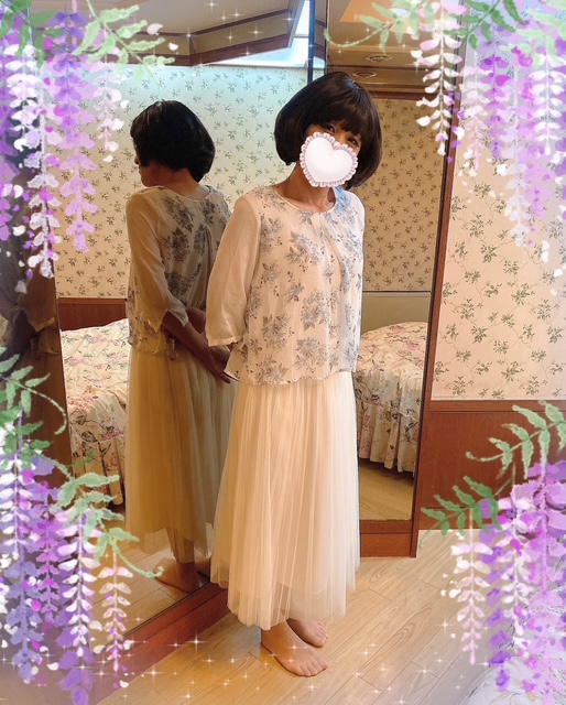 可愛い花柄ブラウスにシフォンの柔らかいスカートがお似合いね(≧▽≦)